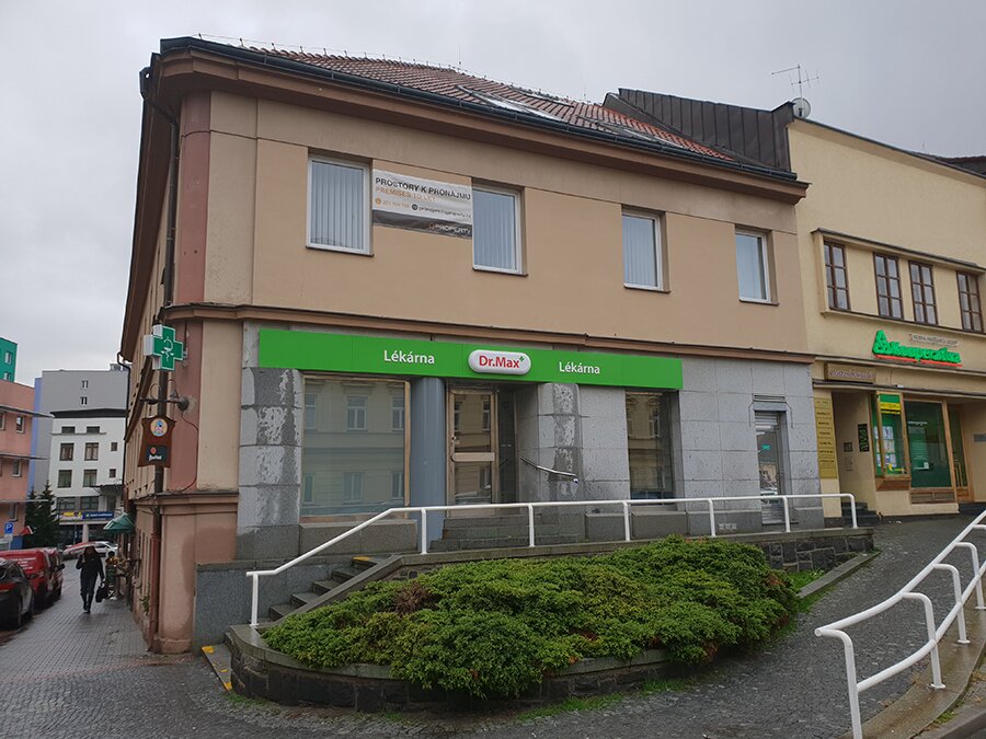 Předmětnou nemovitostí je rohová budova o čtyřech nadzemních podlažích. Z náměstí se přímo vstupuje do obchodních prostor. Ve 2. a 3. NP se nacházejí kanceláře a sociální zázemí. V podkroví se nachází ateliér a dále taktéž kanceláře a sociální zázemí. Přízemní obchodní jednotka je pronajatá sítí lekáren Dr.Max.