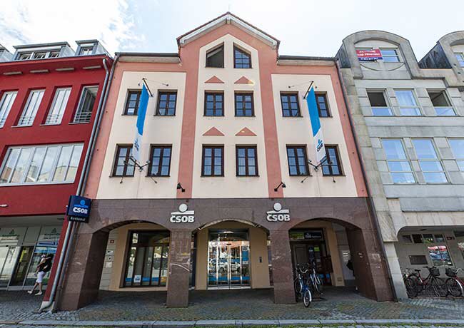 Předmětnou nemovitostí je řadová budova o jednom podzemním a čtyřech nadzemních podlažích se dvorem. Z náměstí se hlavním vstupem vchází do pobočky Československé obchodní banky, a.s. Nájemníci nebytových prostor využívají ke vstupu do budovy samostatný vchod situovaný vedle hlavního vstupu do pobočky banky. Ve druhém patře se nacházejí kanceláře, sociální zázemí a menší sklady. V podkroví jsou umístěné kanceláře, sociální zázemí, terasa a komunikace. Suterén je využit na technické místnosti, sklady a archivy. Parkování je možné na parkovacích stáních v blízkosti nemovitosti.