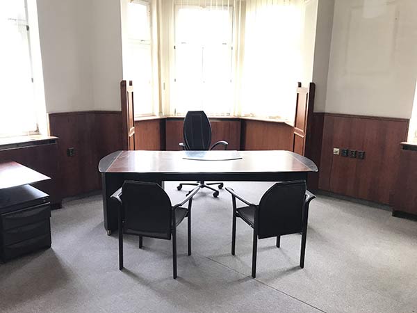 zasedací místnosti, kanceláře, toalety kuchyňky a další zázemí.